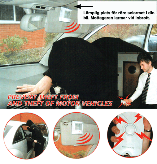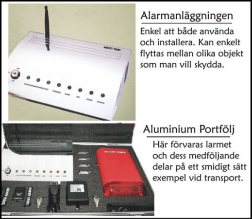 Larmet består av ett rörelselarm med fjärrkontroll.