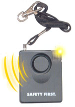 140 decibel samt lyseroch skrämmer en angripare. Särskilt