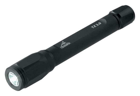 Gerber TX3.0 - Taktisk ficklampa Gerbers TX3.0 är en taktisk ficklampa utformad för jakt och strid och har en 3-wattslysdiod med en ljusstyrka på 51 lumen för upp till 50 meters extrem belysning. Ficklampan tåler hårda tag. Låsläge ger skydd mot oavsiktlig påslagning. Drivs med tre AA-batterier. Produkten är certifierad som "klass 2 LED". Batterier och Nylon fodral för att bära ficklampan i bältet medföljer. Ficklampa i "batong modell" är populära bland poliser och säkerhetsperonal som ett effektivt extra självförsvar utöver vanliga batongen. Tekniska data |