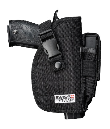 för pistoler Rejält bälteshölster som går att montera i vertikalt eller horisontellt läge. Passar de flesta pistoler och låser säkert fast vapnet med en kraftig snabbkoppling. Hölstret har en ficka för magasin eller ficklampa. Pistolen på bilden är en Sig Sauer P226. Tekniska specifikationer